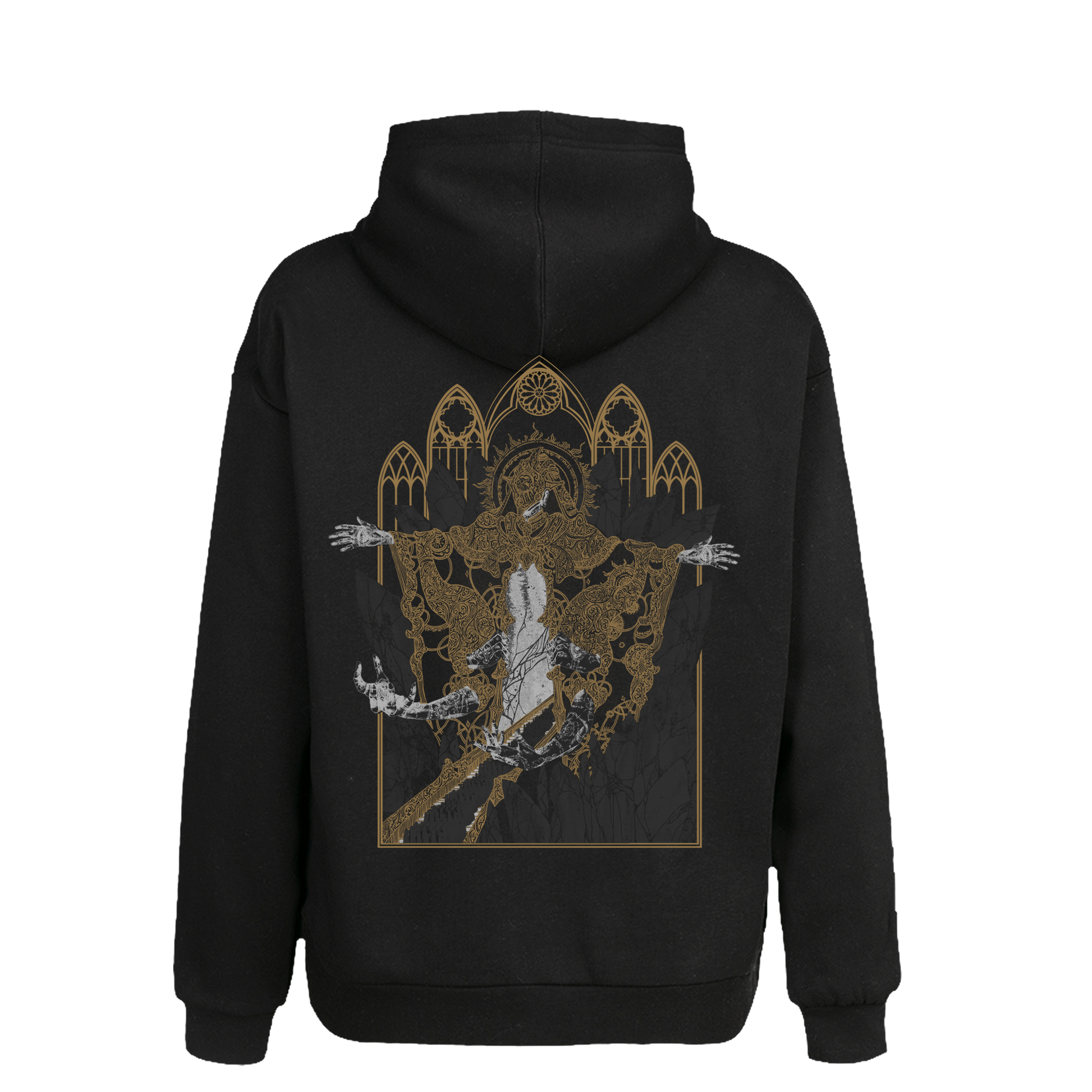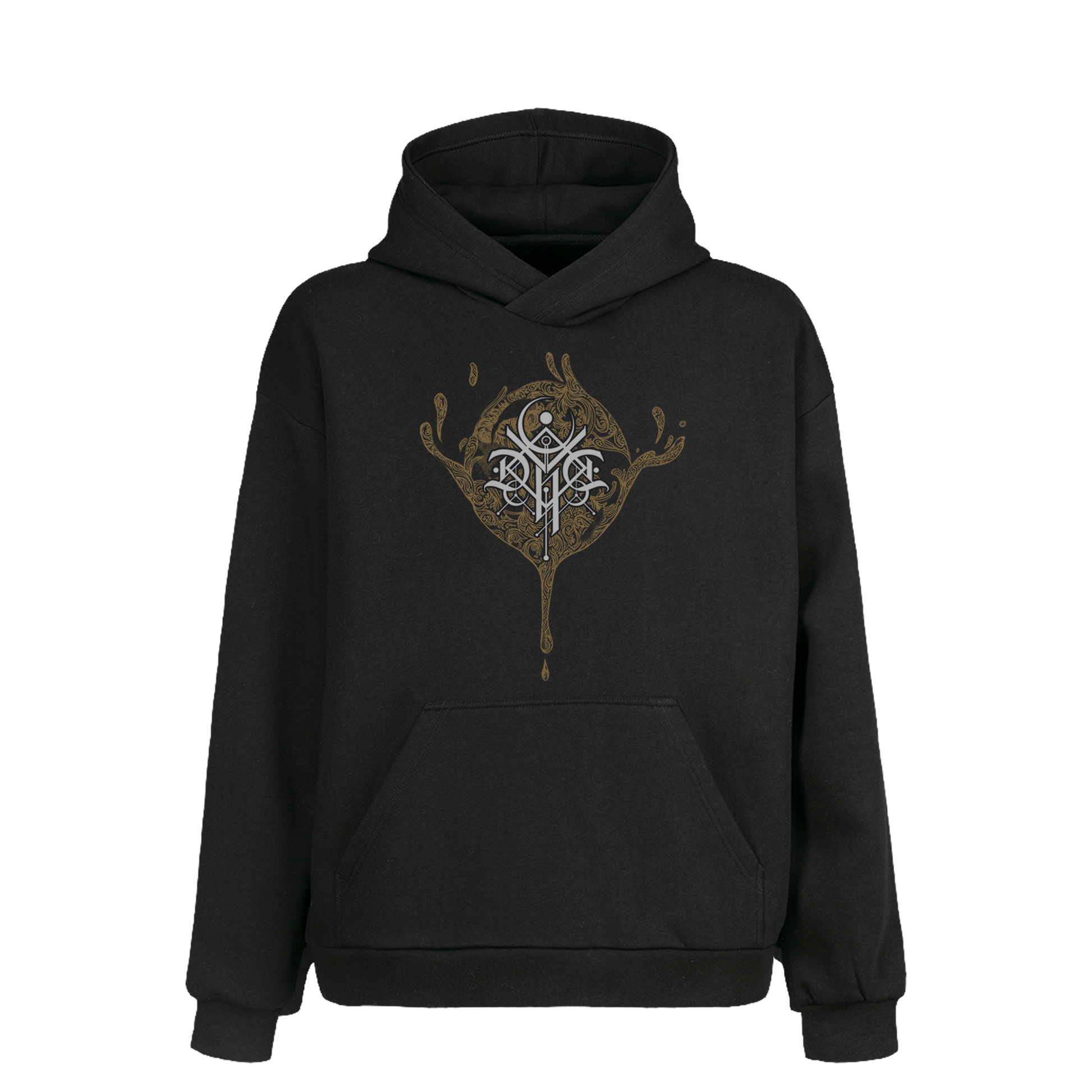 DVNE sigil golden orb front print & Voidkind cover art back print, printed on high quality Native Spirit hoodie.